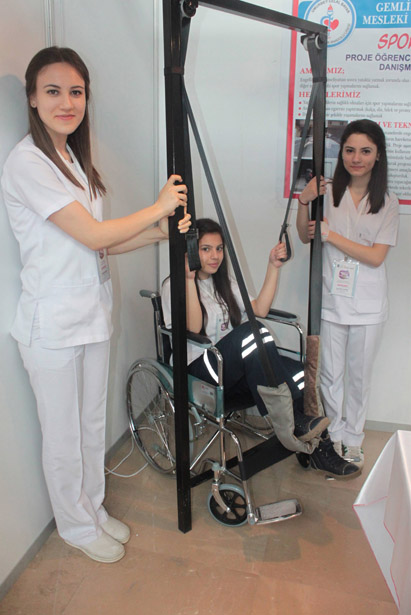 Bursa Bilim Şenliği Proje Yarışmasında ön elemeyi geçen 150 proje Atatürk Kongre Kültür Merkezi Fuaye alanında sergilendi. Türkiye çapında binin üzerinde proje başvurusu olan yarışmadaki buluşlardan biri olan 'Spor Engel Tanımaz' engelli vatandaşların tek başına spor yapmasına imkan sağlayacak. 3 adet profilden oluşan ve makara sistemine geçirilen emniyet kemeri kayışı ile çalışan mekanizma, tekerlekli sandalye ile parka gelen her vatandaşın kolaylıkla spor yapmasını sağlıyor. Her yaşta herkesin hiçbir engele maruz kalmadan spor yapmasını hayal ettiklerini belirten Gemlik Umurbey Celal Bayar Mesleki ve Teknik Anadolu Lisesi öğrencileri Fehime Aslan ve Nimet Önder, böyle bir projeye imza attıklarını söyledi.