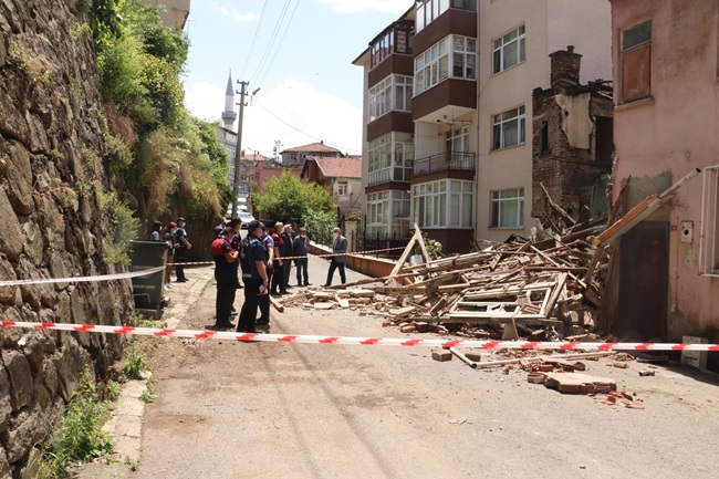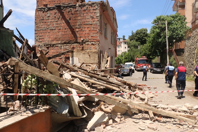 Zonguldak’ın Ereğli ilçesinde bağlı Kirmanlı Mahallesinde metruk bina büyük bir gürültü ile çöktü.