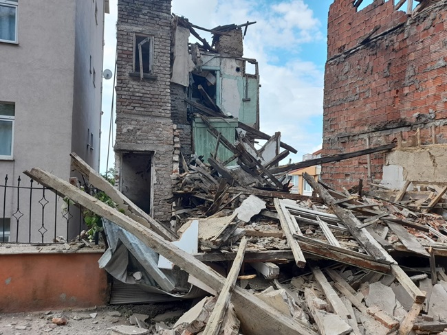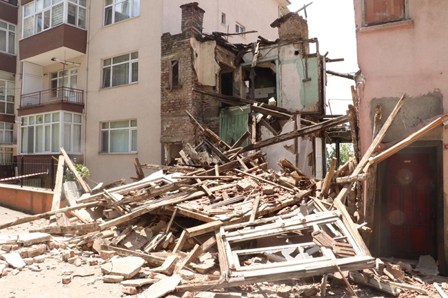 Belediye Ekiplerinin binanın kalan kısmının da yıkılması için çalışma başlatacağı öğrenildi.