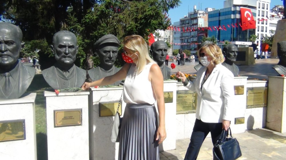 Özbağ’ın konuşmasının ardından Atatürk Anıtı alanında bulunan , “Müdafai Hukuk Cemiyeti” üyelerinin 12’sinin büstüne karanfiller bırakıldı.