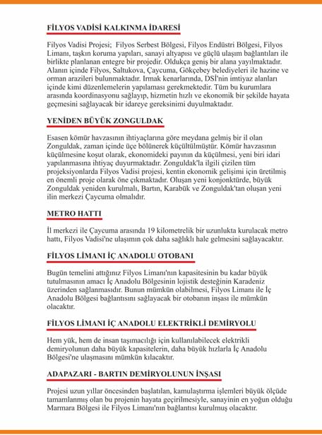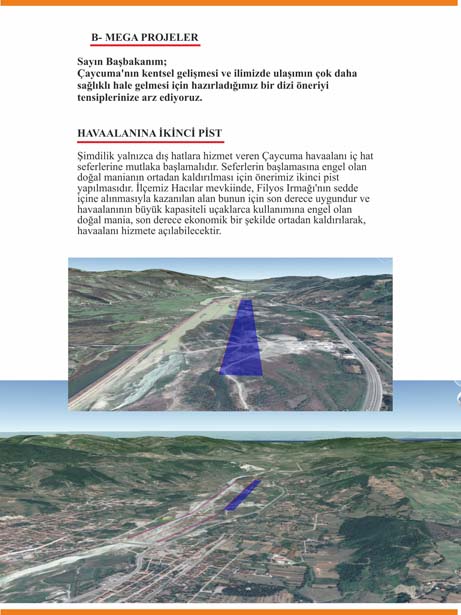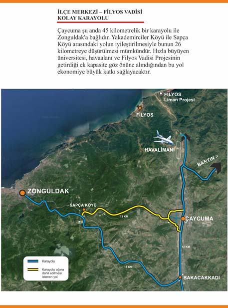 Dosyalarında bölgeye ilişkin mega projelerin de bulunduğunu söyleyen Kantarcı, "Filyos Üniversitesi kurulması, havaalanına doğal maniayı ortadan kaldırarak uçuş güvenliğini tam sağlayacak ikinci pist yapılması, Zonguldak il merkezi ile Filyos Vadisi arasını çok kısaltacak eski Zonguldak karayolunda iyileştirmeler yapılması, Çaycuma'ya iki yeni karayolu köprüsü yapılması, Filyos Vadisi Kalkınma İdaresinin kurulması, Filyos Limanı İç Anadolu Otobanının inşası, Filyos Limanı İç Anadolu Elektrikli Demiryolunun yapımı, Adapazarı - Bartın demiryolunun inşası, Zonguldak Çaycuma arasına Filyos Vadisi Projesi'nin hizmete girmesinin ardından artacak yolcu trafiğini karşılamak üzere metro hattı kurulması gibi mega projelerin hayata geçirilmesini istedik. Zaten, bunlar hayata geçmeden Filyos Vadisi Projesinden tam kapasite ile verim almak mümkün değil" dedi.
