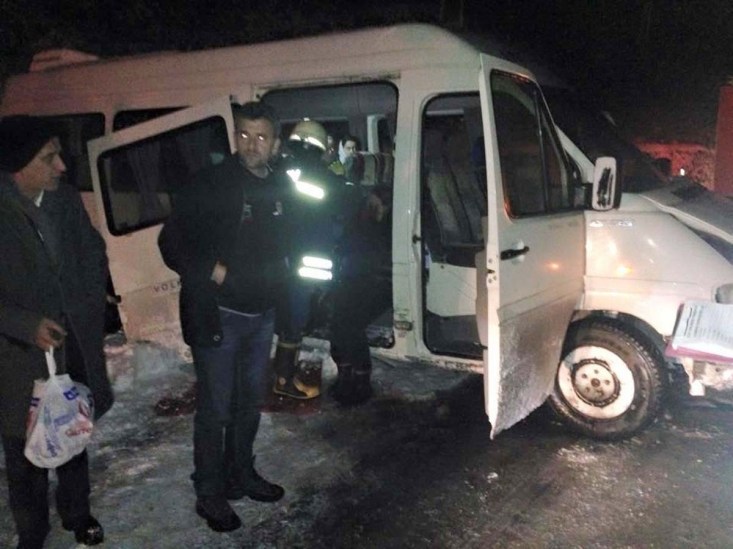Zonguldak'ın Alaplı ilçesinde buzlanma nedeniyle kontrolden çıkan bir minibüsün istinat duvarına çarptı. Kazada 3 kişi yaralandı.