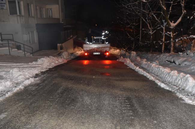 Belediye ekipleri ayrıca, yüksek rakımlı mahallelerde iş makineleriyle kar küreme çalışmalarını sürdürüyor.