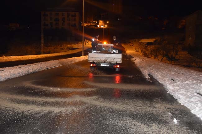 Hava sıcaklığının -2 dereceye kadar düştüğü Kdz. Ereğli’de, don ve buzlanmalara karşı belediye ekipleri gün ağarmadan, araçlar trafiğe çıkmadan yollarda tuzlama çalışmaları başlattı.