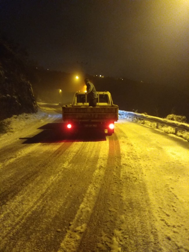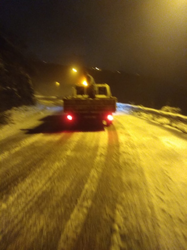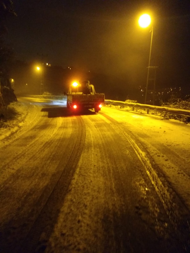 Kar küreme araçları da, gece boyunca aralıklarla devam eden kar yağışına karşı belli güzergahlarda çalışmalarını yürütüyor.