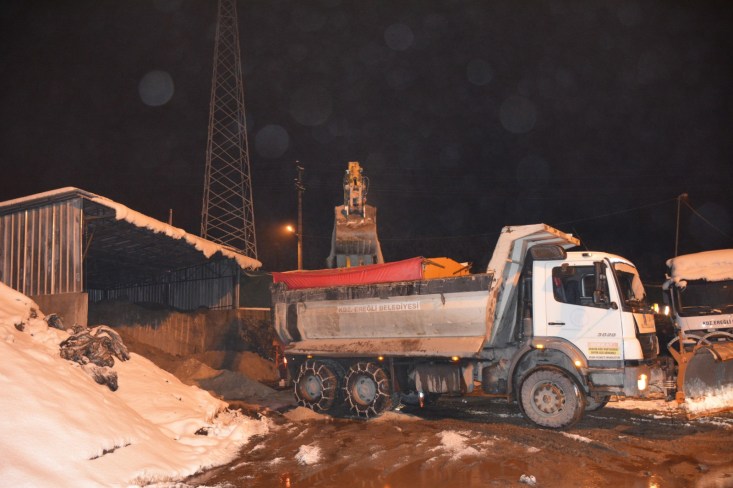 Belediyesi, kar yağışı sonrası ilçe genelinde gece yarısından itibaren başlayan
