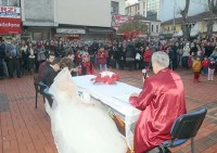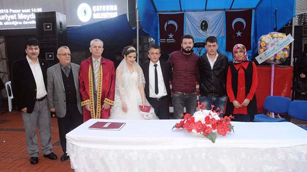nikah kıyıldığını gören vatandaşlar nikahı meraklı gözlerle izledi. Kıyılan