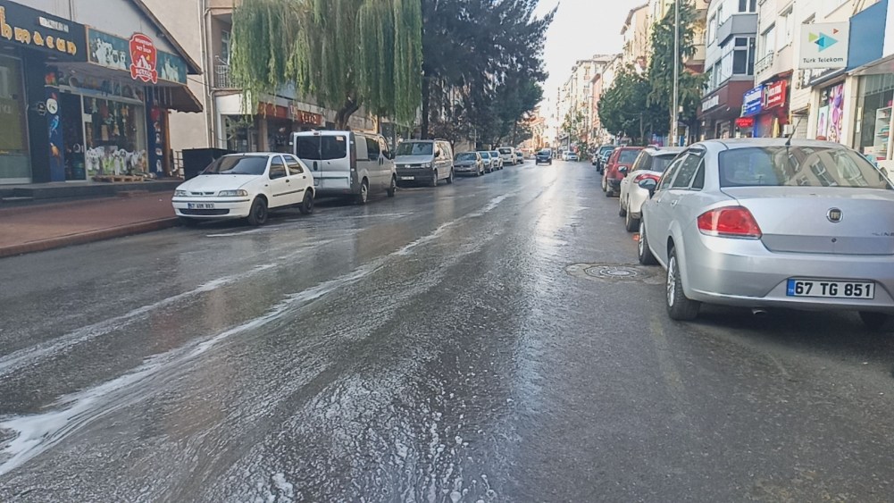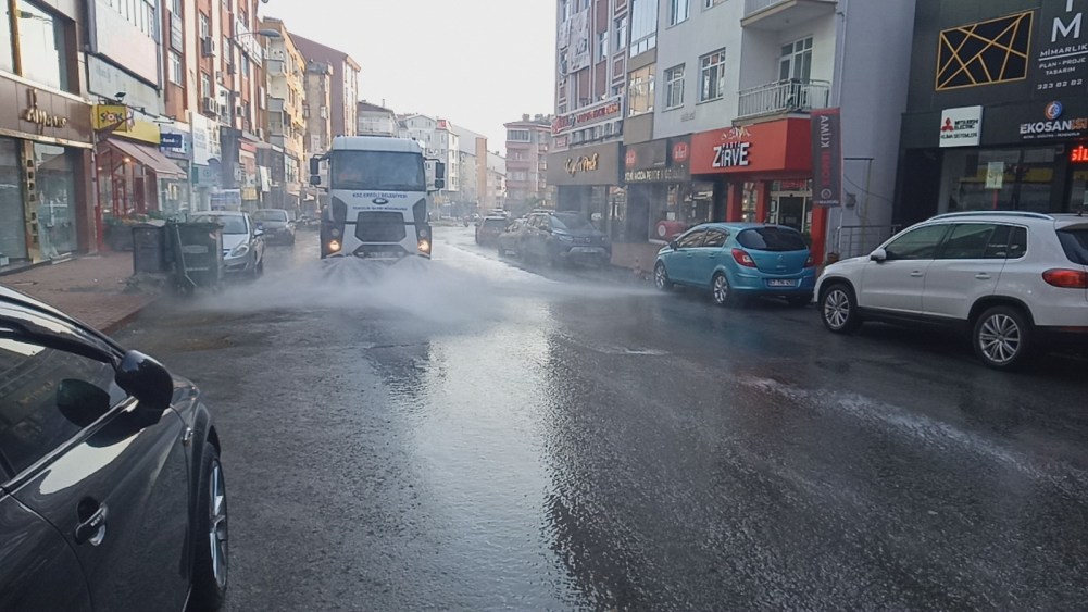 Zonguldak’ın Ereğli ilçe belediyesi tarafından sokağa çıkma yasağında cadde ve sokaklar yıkanarak dezenfekte edildi.
