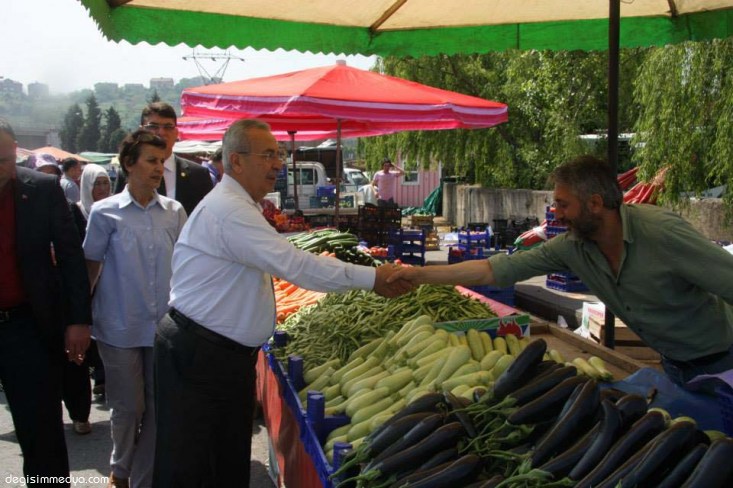 MHP Zonguldak Milletvekili Adayı Zeki Çakan, Kdz.Ereğli'de kurulan Cumartesi Pazarı'nda esnafla bir araya gelerek, destek istedi.