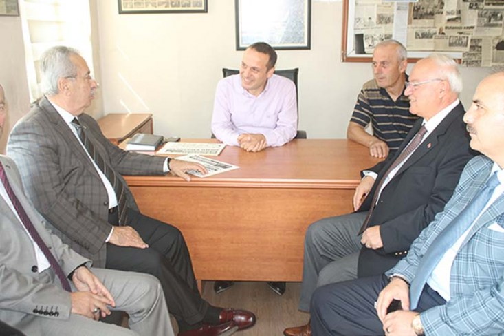beraberindeki partililer ile birlikte Karaelmas Gazeteciler Derneği'ni ziyaret