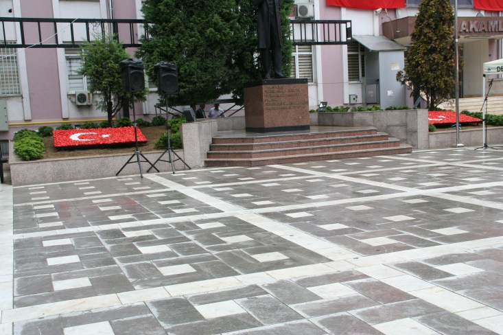 Devrek'te Cumhuriyet Alanına yapılan taş bayrak vatandaşlar tarafından büyük ilgi görüyor.