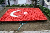 Zonguldak'ın Devrek ilçesinde belediye tarafından yaptırılan ve çakıl taşından oluşan taş bayrak vatandaşlar tarafından büyük ilgi görüyor. Cumhuriyet Alanı Kaymakamlık Hizmet Binasının önünde bulunan Atatürk büstünün her iki tarafına yapılan 1.50'ye 2.50 ebatlarında taş bayrak hakkında bilgi veren Belediye Başkanı Mustafa Semerci, "Bu bayrak tamamen çakıl taşından yapılarak buraya montajı gerçekleştirildi. 30 Ağustos Zafer Bayramına yetiştirmek için arkadaşlarımız büyük gayret sarf ettiler. İlçemiz yapılan çeşitli çalışmalarla büyük ölçüde değişmeye başlamıştır. İnşallah çok yakında geceleri rengarenk ışıklandırılmış gündüzleri ise vatandaşlarımızın rahatça vakit geçirebilecekleri bir Devrek'e kavuşacaklardır" diye konuştu.Haber : İHA
