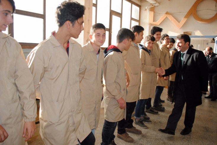 AK Parti İlçe Başkanı Mehmet Fatih Çakır ve beraberindekiler, Okul Müdürü Adnan Döner ile Müdür Baş Yardımcısı Selahattin Çakırlar eşliğinde atölyeleri gezerek ziyaretlerini tamamladılar.