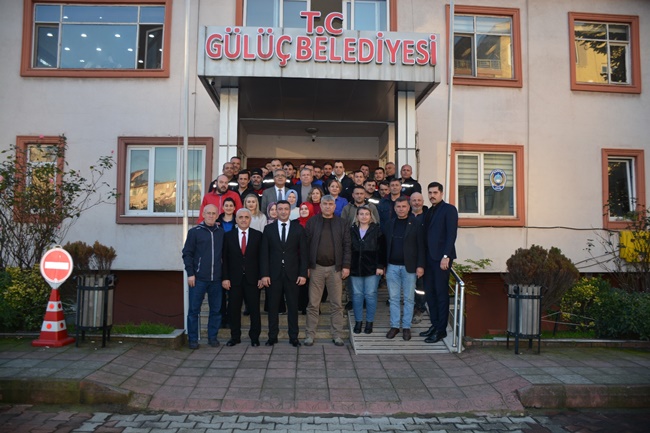 Gülüç belediyesi çalışanları ve birim amirleri, 2024 yılının son çalışma gününde baskan Atilla Tarık Semiz'i ziyaret ederek yeni yılını kutladılar. Atilla Tarık Semiz'de belediye çalışanlarının ve birim amirlerinin yeni yılını kutladı. Ziyarette konuşan Belediye Başkanı Atilla Tarık Semiz "2025 yılı ülkemize bölgemize ilçemize ve beldemizde güzellikler getirsin. 2025 yılında beldemize ve belde halkımıza hizmetimiz artarak devam edecek. Sizlerle birlikte güzel çalışmalara ve hizmetlere imza atacağımıza inancım sonsuz. Bu vesile ile yeni yılın sizlere ve ülkemize güzellikler getirmesini diliyorum. Acıların ve savaşların yaşanmadığı bir yıl olmasını temenni ediyorum" dedi