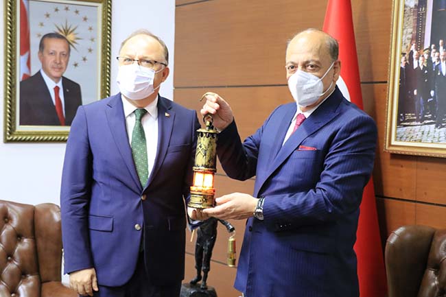 Çalışma ve Sosyal Güvenlik Bakanı Vedat Bilgin ve beraberindekiler valilik ziyaretinin ardından Amelebirliği Başkanlığını ziyaret ederek Başkan Şenol Yücel ile görüş alışverişinde bulundu.