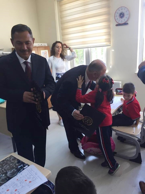 Kaymakam Çorumluoğlu ve protokol, daha sonra 1 D sınıfını ziyaret ettiler. Kaymakam ve protokol, öğrencilere hediyeler verdi, kendileriyle sohbet etti. Ziyaret esnasında 2018-2019 eğitim yılının ilk ders zili de okul müdürü Tuncay Uzun ve Milli Eğitim Müdür Vekili İsmail Aksoy tarafından çalındı.