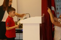 Sevgili çocuklar, sizlere güveniyoruz, Kanuni'nin, Fatih'in torunları olarak sizlere güveniyoruz. Kapımız, bizden istekleriniz için her zaman yanınızda olmak için size açıktır. Umarım güzel bir eğitim öğretim yılı geçireceğiz. Karadeniz Ereğli'sindeki görev süremin hayırlı olacağını düşünüyorum. Buraya geldiğim iki günlük süre içinde ilçenin son derece güzel, gelişmiş, sempatik bir ilçe olduğunu görmekten büyük mutluluk duydum. Çalışma arkadaşlarımızla beraber sadece eğitimde değil, Ereğli'deki her alanda sizlere hizmet etmekten büyük mutluluk duyacağımızı belirtmek istiyorum."