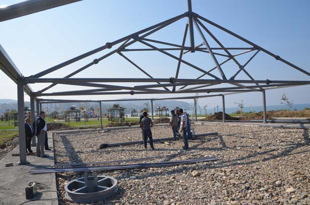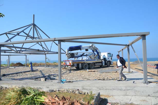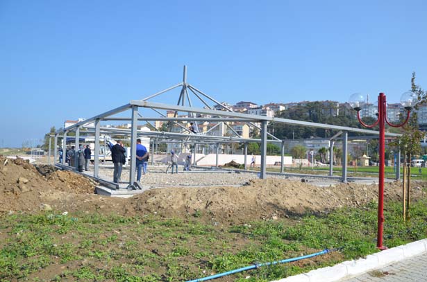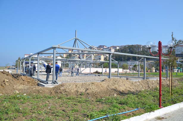 sahil parkındaki amfi tiyatro inşaatı ve park alanındaki düzenleme çalışmaları
