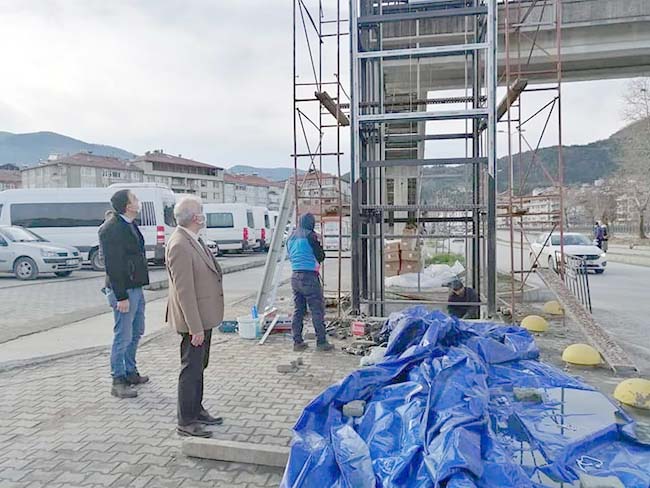 Çalışmaları yerinde inceleyen Belediye Başkanı Çetin Bozkurt,” Seçim döneminde verdiğimiz sözler ve projelerimiz tek tek yerine getirmeye devam ediyoruz. Asansör inşaatını en kısa zamanda bitirerek vatandaşlarımızın hizmetine sunmayı hedefliyoruz” diye konuştu.