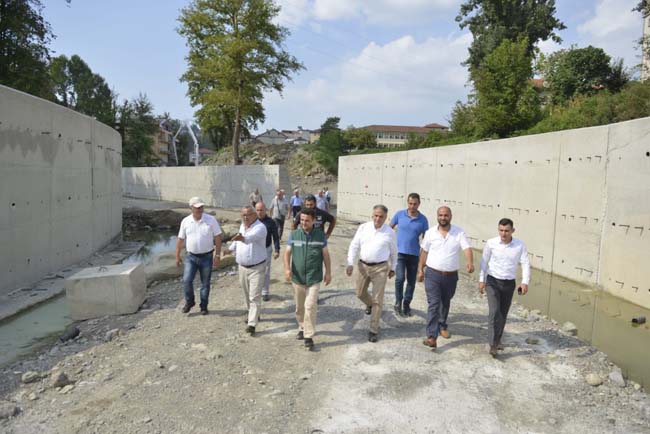 Karadeniz Ereğli AK Parti İlçe Başkanı Saffet Bozkurt, DSİ 23.Bölge Müdürü Yasin Devrim ile birlikte yapımı devam eden dere ıslah çalışmalarını incelediklerini bildirdi.