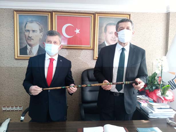 Selçuk'a ziyaretinin anısına asaletin simgesi olan Devrek Bastonu takdim edildi.