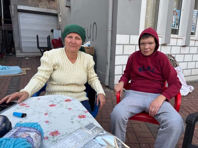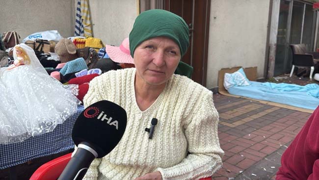 "Ben burada el örgüsü yapıp, satıyorum. Kaymakamımızın, belediye başkanımızın ve zabıtaların göstermiş olduğu yer ile birlikte el emeklerini satmaya uğraşıyorum. Bunlarla geçimini sağlıyorum. Engelli maaşıyla evimizin kirasını, devletin vermiş olduğu bez yardımı var. Benim çocuğum ayda 4 paket bez kullanıyor. Bugün sadece bir bebek sattık, o parayla eve gideceğiz. Burada çanta, bebek yapıp satmaya uğraşıyorum. Oğlumun rahatsızlığı ise kromozom fazlalığı var. Aynı zamanda epilepsi ile kas hastalığı var. Psikiyatri sorunlarımız var."