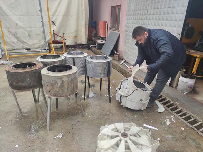 Zonguldak’ın Çaycuma ilçesinde ki esnaflar eski ve kullanılmayan çamaşır makinesi kazanından deprem bölgesinde kullanılmak üzere soba üretimine başladılar.
