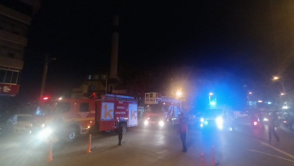 Zonguldak’ın Ereğli ilçesinde cemaat namazdayken caminin kubbesinde yangın çıktı.