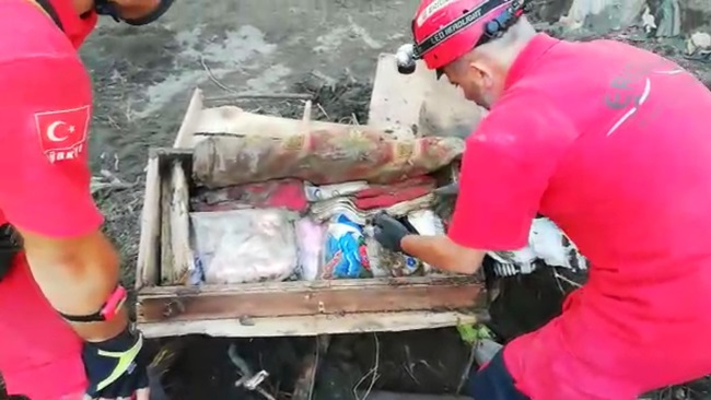 Annenin cansız bedeninin denizden çıktığı, fakat kızının bulunamadığı ihbarı gelmişti. Kdz. Ereğli Belediyesi İtfaiye ekibi bunun üzerine bölgeye yönelmiş, kepçe ile duvarlar kırılmıştı. Evin içindeki çamur kazma kürek yardımıyla boşaltılmaya başlandı. Bu sırada çamurların içinden 1 adet ahşap sandık çıktı. Emniyet ekiplerine bilgi verildi ve videoyla kayıt altına alınarak sandık açıldı. İçinde çoraba sarılı 4 adet ziynet eşya kutusu ve 1 adet saat bulundu. Ziynet eşyaları 2 adet altın alyans, 2 adet çeyrek altın ve 1 çift altın küpeden oluşuyordu. Kdz. Ereğli İtfaiye ekibi değerli eşyaları Afet Koordinasyon Merkezi’ne götürerek tutanakla PAK(Polis Arama Kurtarma) ekiplerine teslim etti.