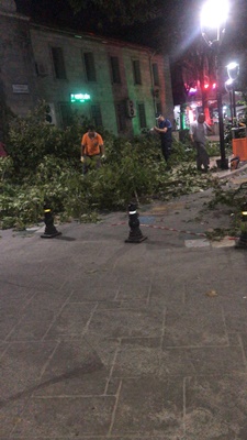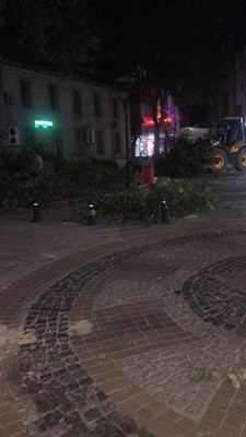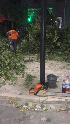 Zonguldak’ın Alaplı ilçesi, ilçe merkezinde ağacın devrilmesinin ardından belediye ekipleri tarafından şehir merkezinde ki ağaçlar budandı.