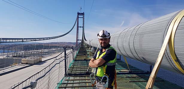Çanakkale 1915 Köprüsü’nün inşaatında görev alan makine kaynak mühendisi Onur Abdullah Hacıabdurrahmanoğlu, aldığı özel izinle köprüyü bisikletle geçen ilk kişi oldu.