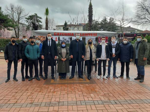 Atatürk Anıtı önünde kurulan stantta, Çanakkale zaferinin ne şartlar altında kazanıldığını hatırlatmak için program düzenlediklerini belirten AK Parti Çaycuma Gençlik Kolları Başkanı Hanifi Gökmen şunları söyledi, “18 Mart 1915, Türk tarihinde bir askeri ve siyasi başarı olmaktan öte inanç ve yiğitlikle örülmüş bir destanın yaradılış tarihidir. 18 Mart 1915 tarihinde Çanakkale'de kutsal değerlerimiz uğruna, tüm olumsuzluklara karşı canı pahasına çarpışan kahraman ordumuz ile yüce milletimiz, kara ve deniz savaşlarında düşman kuvvetlerine 'Çanakkale Geçilmez' dedirterek, hür ve bağımsız yaşama kararlılığını dünyaya ilan edip, vatan ve bayrağına sahip çıkmıştır.
