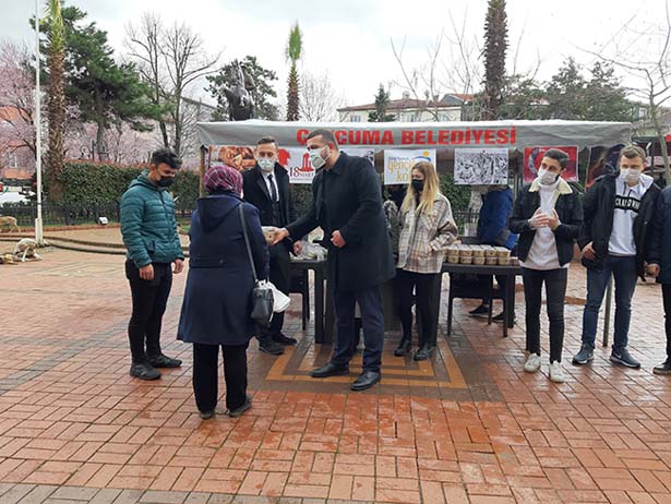 Zonguldak'ın Çaycuma ilçesinde 18 Mart Çanakkale Zaferi ve Şehitleri anma gününde AK Parti Çaycuma Gençlik Kolları Başkanlığı, vatandaşa hoşaf ve ekmek ikramında bulundu.