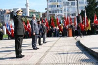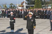 Törende Kaymakam Madenoğlu, Karadeniz Bölge Komutanı Tuğamiral Doğan, Ereğli Belediye Başkan Vekili Alpago ve Kdz Ereğli Harp Malulü Gaziler, Şehit Dul ve Yetimleri Derneği Başkanı Mehmet Ali Demirdüyen Atatürk Anıtı'na çelenk sundu. Daha sonra saygı duruşunda bulunuldu, İstiklal Marşı okundu.