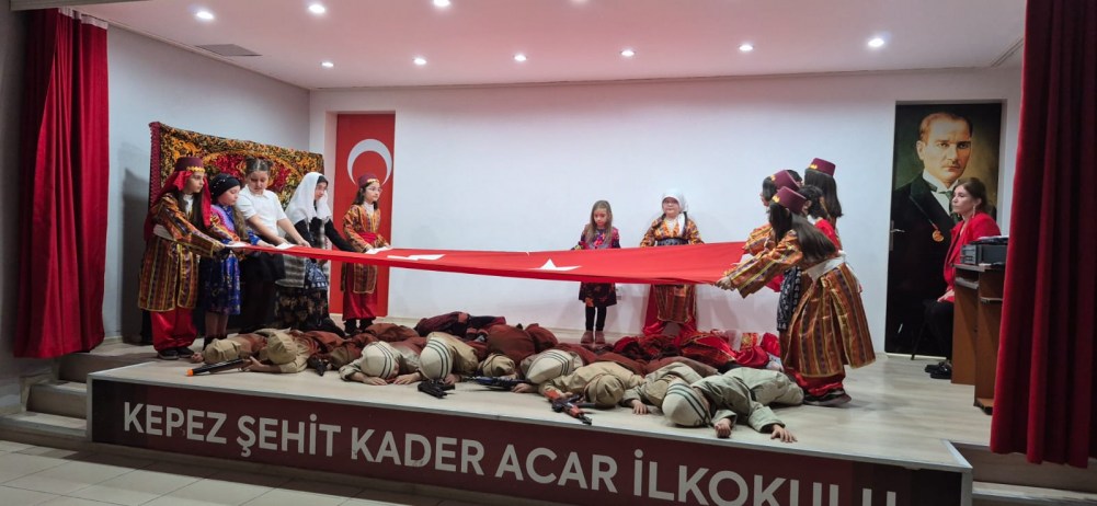 Kepez Şehit Kader Acar İlkokulu’nda gerçekleştirilen kutlama programı kapsamında sergilenen ‘Çanakkale’de Düğün’ adlı oyun büyük ilgi gördü. Sınıf Öğretmeni Serap Gündoğdu tarafından hazırlanan ‘Çanakkale’de Düğün’ adlı oyun öğrenciler tarafından başarıyla sergilendi. Öğrenciler ve veliler tarafından izlenen oyun büyük beğeni aldı. Oyunda öğrenciler Çanakkale ruhunu yaşatmaya çalıştı.