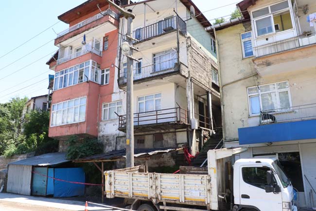 İlçeye bağlı Sarı korkmaz Mahallesi Suphi Konak Caddesi Numara 66’ da dün gece meydana gelen heyelanda 4 katlı binada yaşayan 4 aile evinden tedbir amaçlı çıkarılmıştı. Sabahın erken saatlerinde olay yerine gelen ekiplerin, ilk incelemede 2 dairenin boşaltılmasına karar verdiği öğrenildi. Diğer daireler için ise geniş kapsamlı inceleme yapılacağı ifade edildi.