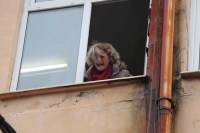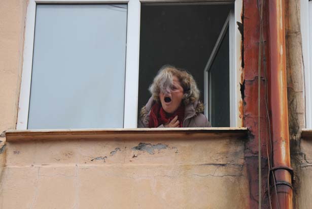 binanın önüne geldi. İkinci katın penceresine çıkan maden teknikeri Lale Tetik,