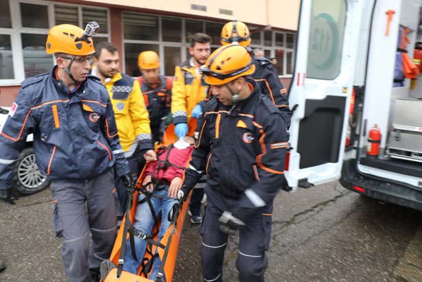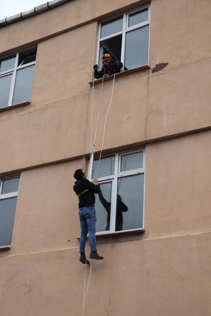 ekipleri de hazırladıkları halat yardımıyla derslikte bulunan kursiyeri aşağıya