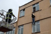 binasında AFAD, itfaiye ve 112 ekiplerince ortaklaşa yangın tatbikatı