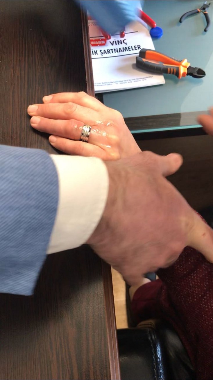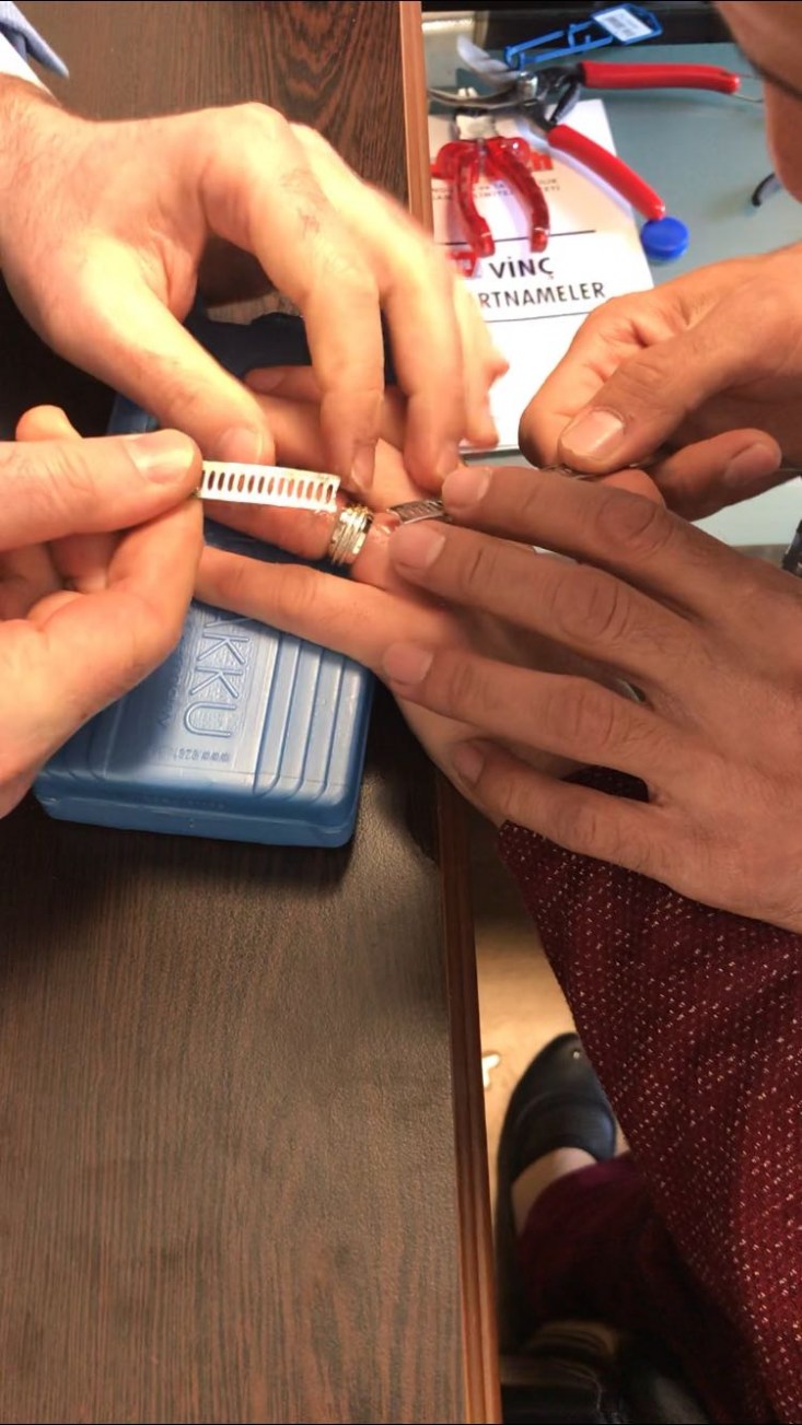 Olay ilçeye bağlı Yeni Siteler mahallesinde meydana geldi. Alınan bilgilere göre Yeni siteler mahallesinde yaşayan Günnar A. (45) parmağının şişmesi sonucu yüzüğü çıkarmaya çalışsa da bunda başarılı olamadı. Akrabasının tavsiyesi üzerine Alaplı Belediyesi itfaiye müdürlüğüne gelen Günnar A. nın parmağında ki yüzük yaklaşık yarım saat süren operasyonun ardından testere ile kesilerek çıkarıldı. Parmakta ki yüzüğü keserek çıkaran Alaplı Belediyesi İtfaiye müdürü Sinan Taşkın "İtfaiye müdürlüğümüze gelen bir vatandaşımızın daha, parmağına sıkışan şişmesine ve morarmasına sebep olan yüzüğü demir testeresi ile hassas şekilde keserek çıkardık, vatandaşımızın duasını aldık bizim için en büyük mutluluk" dedi. Günnar A, yüzüğü çıkaran itfaiyecilere teşekkür etti.