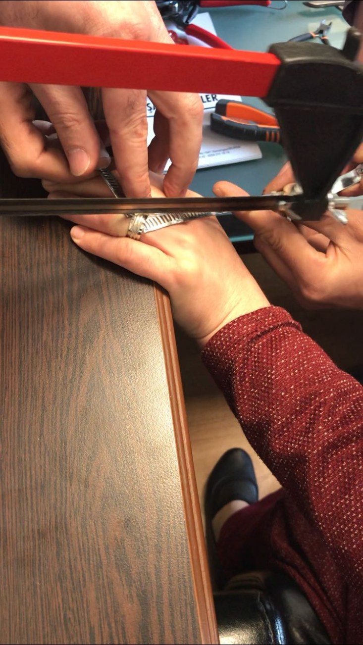 Zonguldak'ın Alaplı ilçesinde parmağı şişen kadının yüzüğü itfaiye ekiplerinin yaptığı çalışmanın ardından demir testere ile kesilerek çıkarıldı.