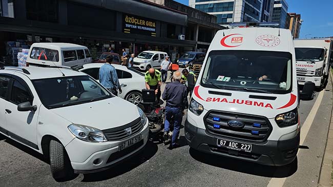 Zonguldak'ın Ereğli ilçesinde otomobille çarpışan motosiklet sürücüsü yaralandı. Kazanın etkisiyle motosiklet sürücüsü yola fırladı.