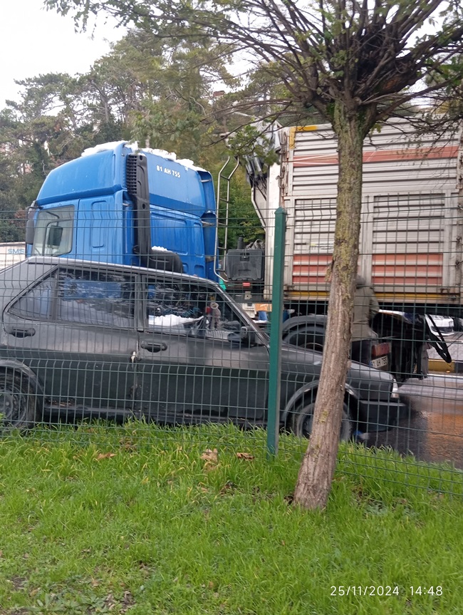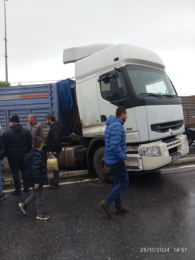 Yaşanan kazada yaralanan otomobil sürücüsü için sağlık ekiplerine haber verildi. Olay yerine gelen 112 ekipleri yaralı sürücüye yaptıkları ilk müdahalenin ardından hastaneye kaldırdı. Kazadan dolayı trafik tek şeritten verilirken, araçların yoldan kaldırılması ile trafik akışı normale dönerken, TIR sürücüleri ifadeleri alınmak üzere karakola götürüldü.