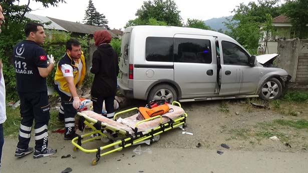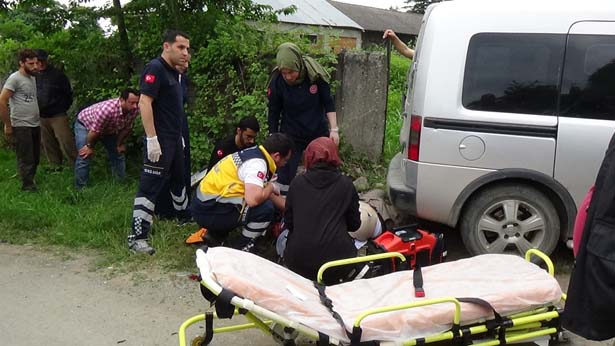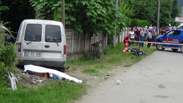 Düzce'de meydana gelen trafik kazasında hafif ticari araç ile motosiklet çarpıştı. Kazada motosiklet sürücüsü hafif ticari aracın altında kalarak can verirken, sağlık ekipleri motosiklet sürücüsünü hayata döndürmek için uzun süre çabaladı.