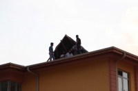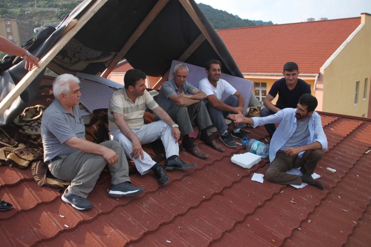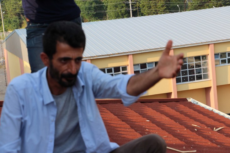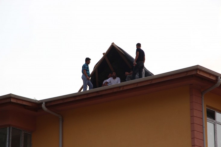 gündür çatı eylemi yapan fen lisesi inşaatında çalışan taşeron sahipleri ve