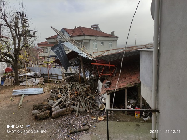 İddiaya göre şiddetli rüzgar iki katlı evin çatısını uçurdu. Yolun karşısına uçan çatı elektrik tellerini de kopardı. Köyün yolu da yaşanan olaydan dolayı kapandı. Olayda ölen ya da yaralanan olmazken, elektriksiz kalan köyde kopan teller için haber verilen ekiplerin çalışma başlattığı öğrenildi. Kapanan yolun yeniden açılması için de çatı parçalarının yoldan kaldırılmaya başlandığı ifade edildi.