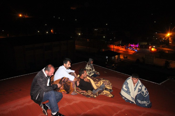ÇATIYA ÇIKARAK YAPTIKLARI EYLEMİ GECE DE SÜRDÜRÜYORLAR