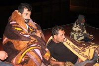 destek verdiği eylemde battaniyelere sarınarak çatıda bekleyen taşeron