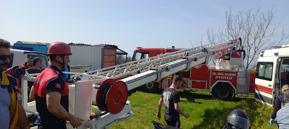 İddiaya göre, kendisine ait barakada tamir işi yapan şahıs, bir anlık dikkatsizliği sonucu düşerek çatı malzemesinin arasına sıkıştı. Olayı gören yakınlarının haber verdiği ekipler kısa sürede olay yerine geldi. Karadeniz Ereğli Belediyesi İtfaiye Ekipleri, çatıda sıkışan adamı yapılan çalışma ile kurtararak ambulansa taşıdı. İlk müdahalesi ambulansta yapılan yaralı, daha sonra hastaneye kaldırıldı.