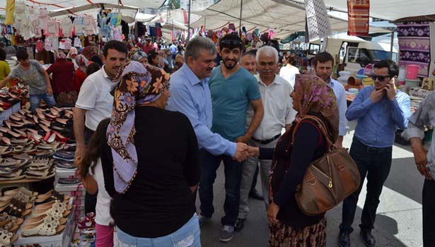 Pazar esnafının tek tek elini sıkan Çaturoğlu, alış-veriş yapan halkı da selamlayarak, 7 Haziran seçimlerinde AK Parti'ye destek olan-olmayan her kese teşekkür etti.